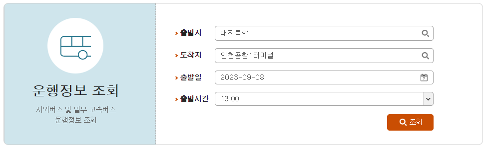 대전에서 인천공항 버스시간표 조회 방법