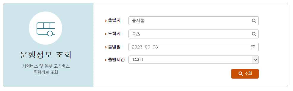 동서울에서 속초가는 버스 시간표 조회 방법