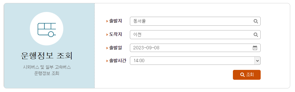 동서울에서 이천가는 버스시간표 조회 방법