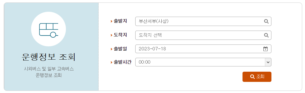 사상 시외버스터미널 버스시간표 조회 방법
