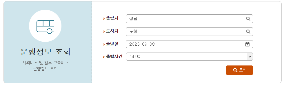성남에서 포항가는 버스 시간표 조회 방법