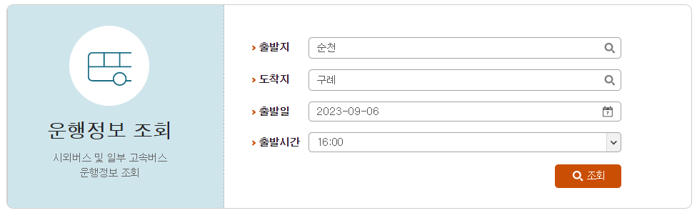 순천에서 구례가는 버스 시간표 조회 방법