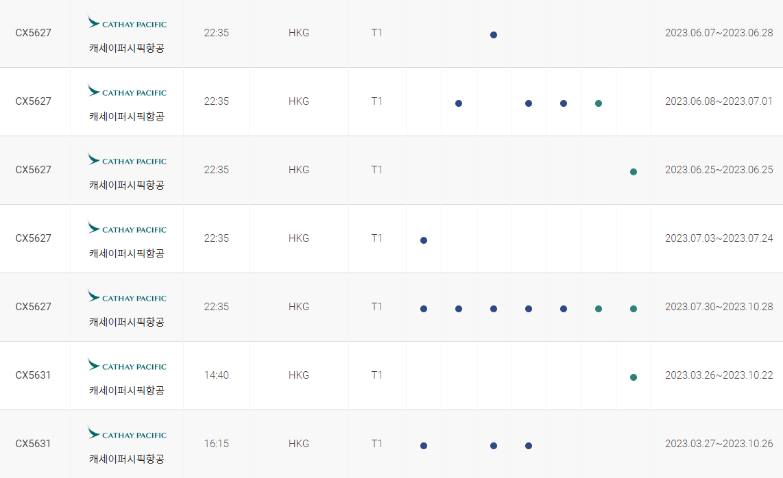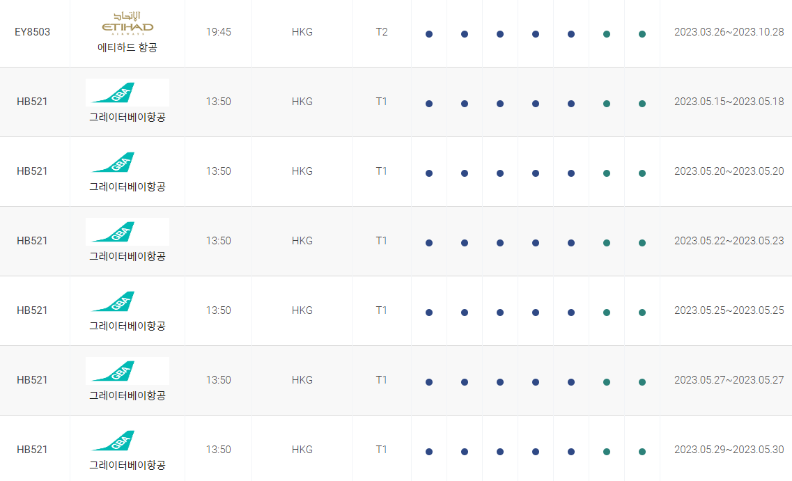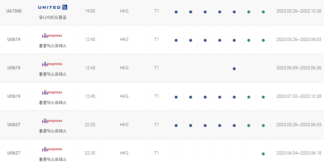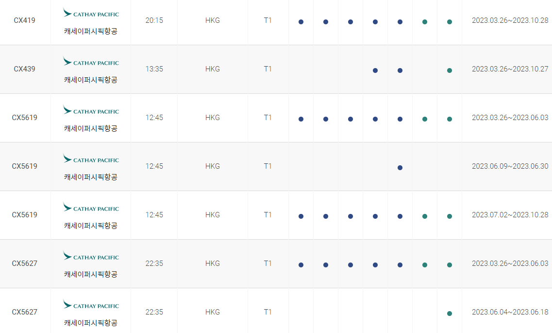인천에서 홍콩까지 비행시간 비행기 시간표를 알아보겠습니다. 인천국제공항에서 제공하는 항공편 운항스케쥴입니다. 출발시간과 운항 요일, 편명 등을 확인할 수 있습니다.