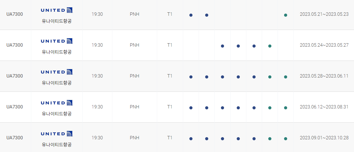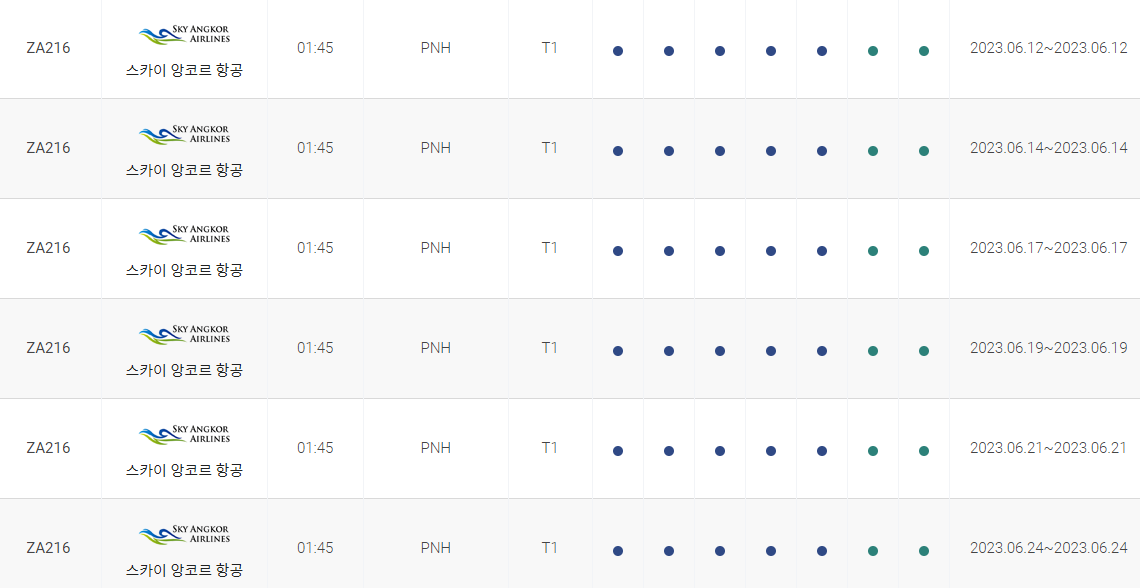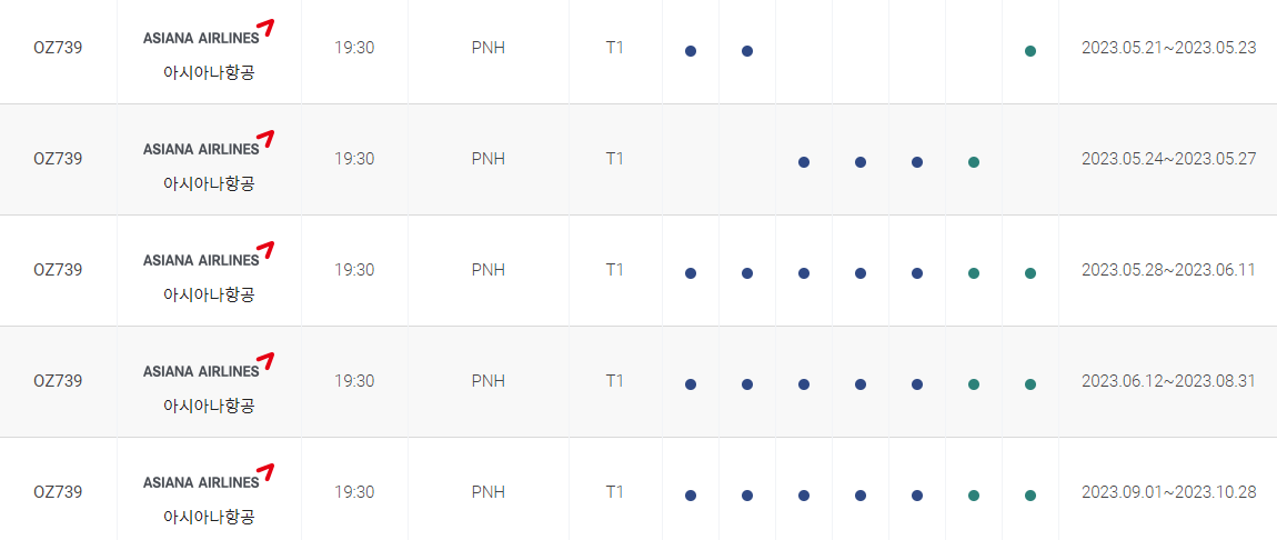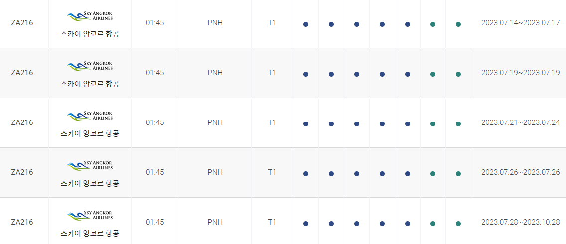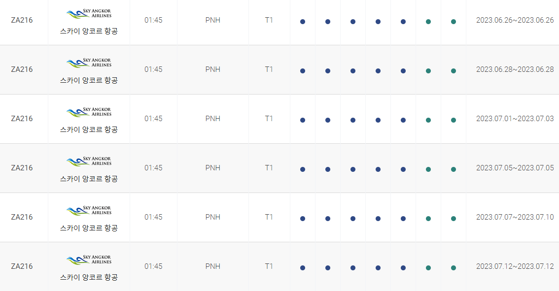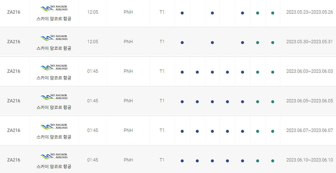 인천 프놈펜 비행시간 비행기 시간표