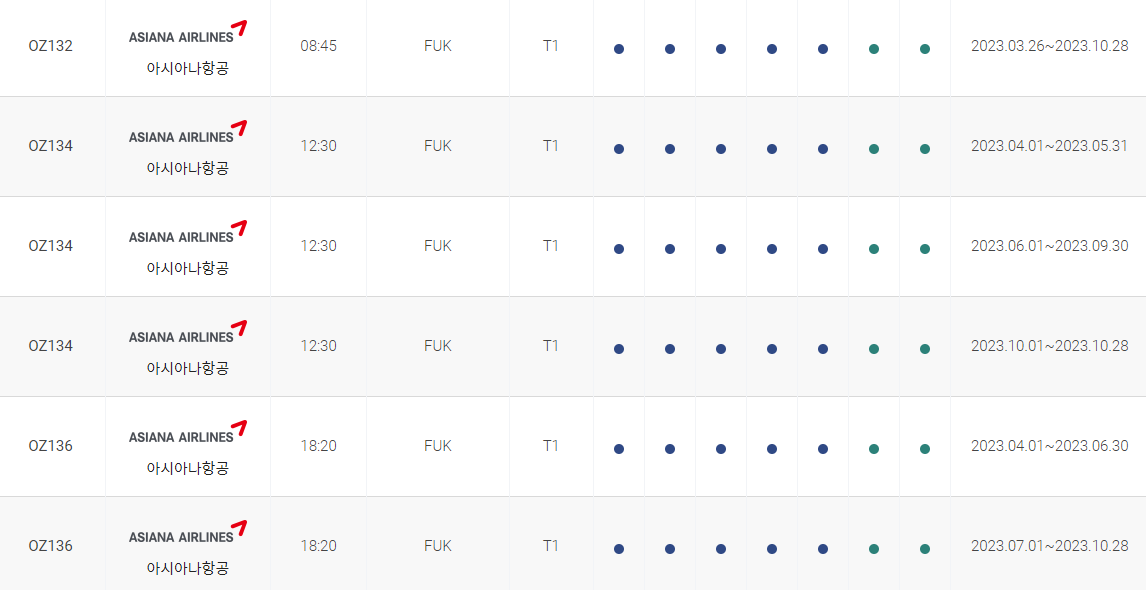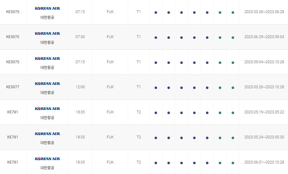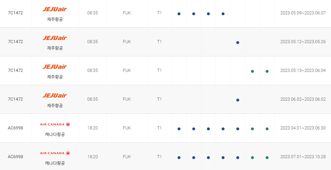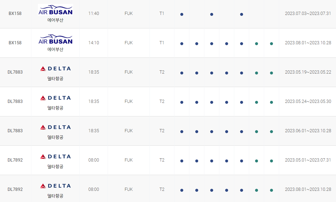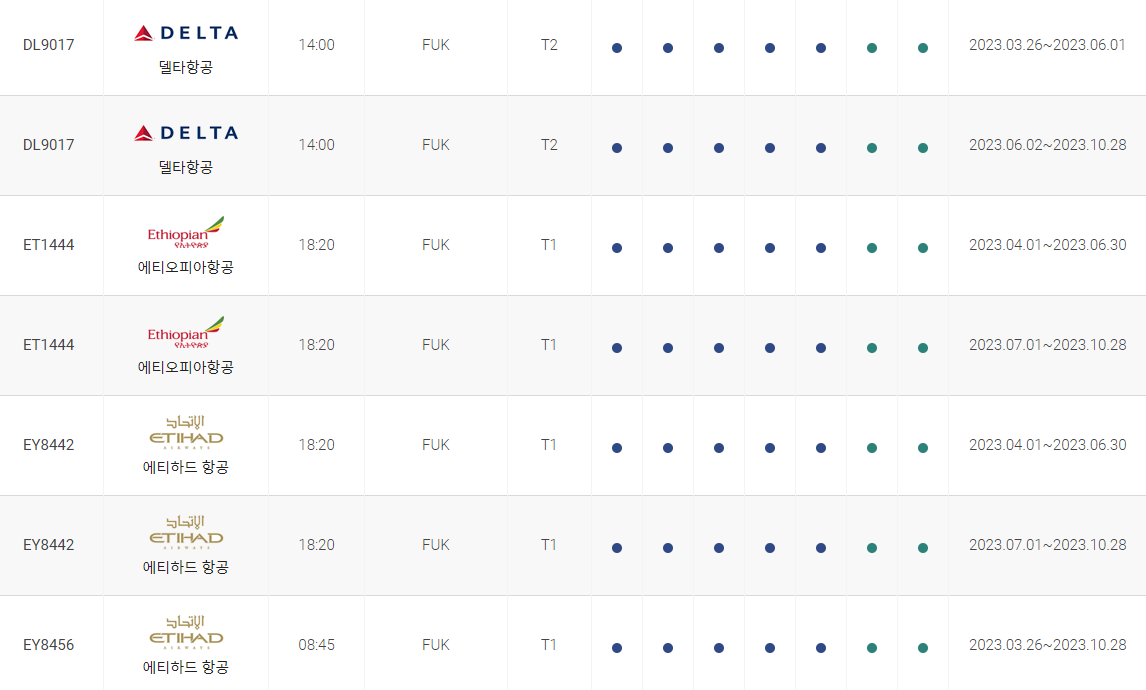 인천 후쿠오카 비행시간 비행기 시간표를 알아보겠습니다. 인천국제공항에서 제공하는 항공편 운항스케쥴입니다. 출발시간과 운항 요일, 편명 등을 확인할 수 있습니다.
