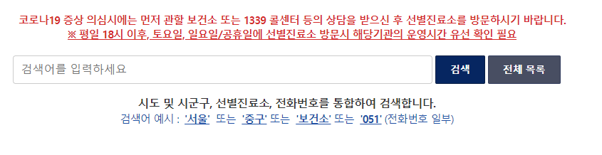해당 사이트에서 살고 있는 대전 지역을 검색하면 지도로 간단하게 신속항원검사가 가능한 병원을 찾아볼 수 있습니다. 다음은 선별진료소 검색하는 법에 대해서 알아보겠습니다.