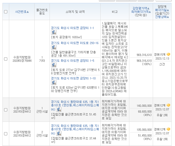 화성 공장 경매물건 조회 찾는 법
